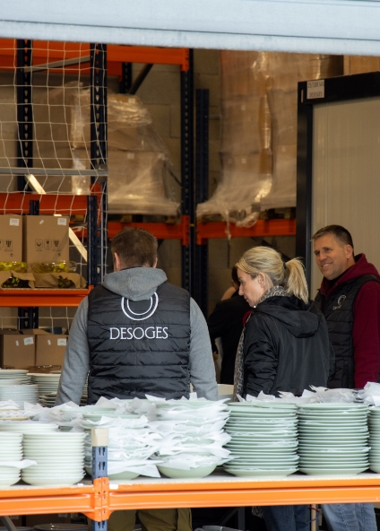 Bienvenue dans notre entrepôt de 200 m² où des dizaines de milliers d’assiettes vous attendent, rangées sur plusieurs mètres de hauteur.